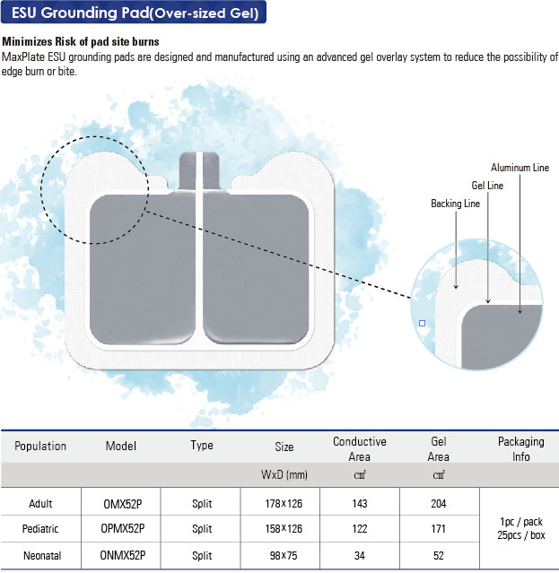 MAXPLATE ESU grounding pads are designed and manufactured using an advanced gel overlay system to reduce the possibility of edge burn or bite.