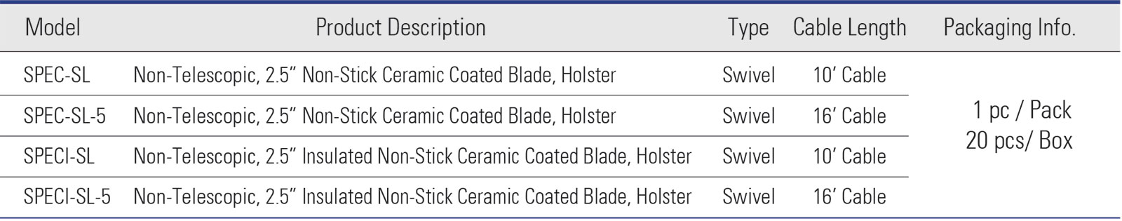 - Non-Telescopic, 2.5” Non-Stick Ceramic Coated Blade, Holster
